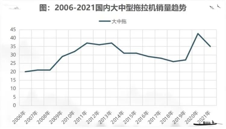 国内拖拉机行业从2013年就已经度过了高峰期进入了下行通道,2020年新冠疫情后在政策的刺激下行业曾经有过短暂的回光返照,之后2021年到2022年又进入了萧条期。2022年国内拖拉机行业市场资源向头部品牌集中的趋势非常明显,国内230多家拖拉机生产企业,一拖东方红、潍柴雷沃、东风农机、约翰迪尔、凯斯纽荷兰等国内外头部品牌的市场占有率以自然流动的方式快速向这几个大品牌集中,而近200家二线、三线及不入流的小品牌则举步维艰,2018-2020年疯狂生长的上百家小品牌要么退出,要么苟延残喘。