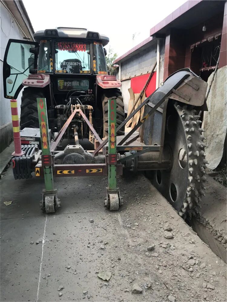 见到段绪刚之前,就听闻他是一个爱“折腾”的人,他的门路很广、渠道很多,干过维修,也帮别人开过拖拉机,连现在自己单干的活也很多样。开沟机、挖掘机、农机等,他都涉足。果不其然,与段绪刚约上见面的地方就在他干开沟的现场。农机通记者只见段绪刚正开着骏玛道MC2104大拖,挂着一台开沟机,正给一个村庄道路开沟,不一会时间,道路一侧已有一条细长的深沟,休息间隙,记者终于跟段绪刚聊上了。