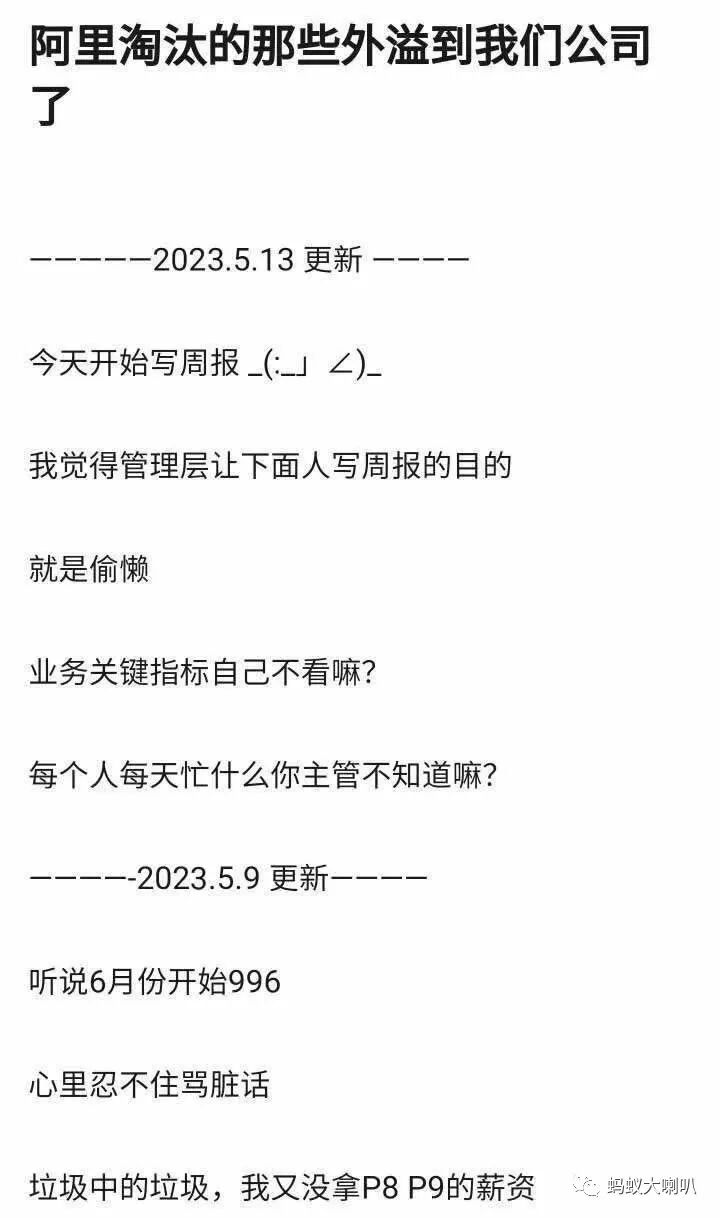 1、阿里“淘汰”的那些已经外溢到我们公司了,带来了周报和996的文化。