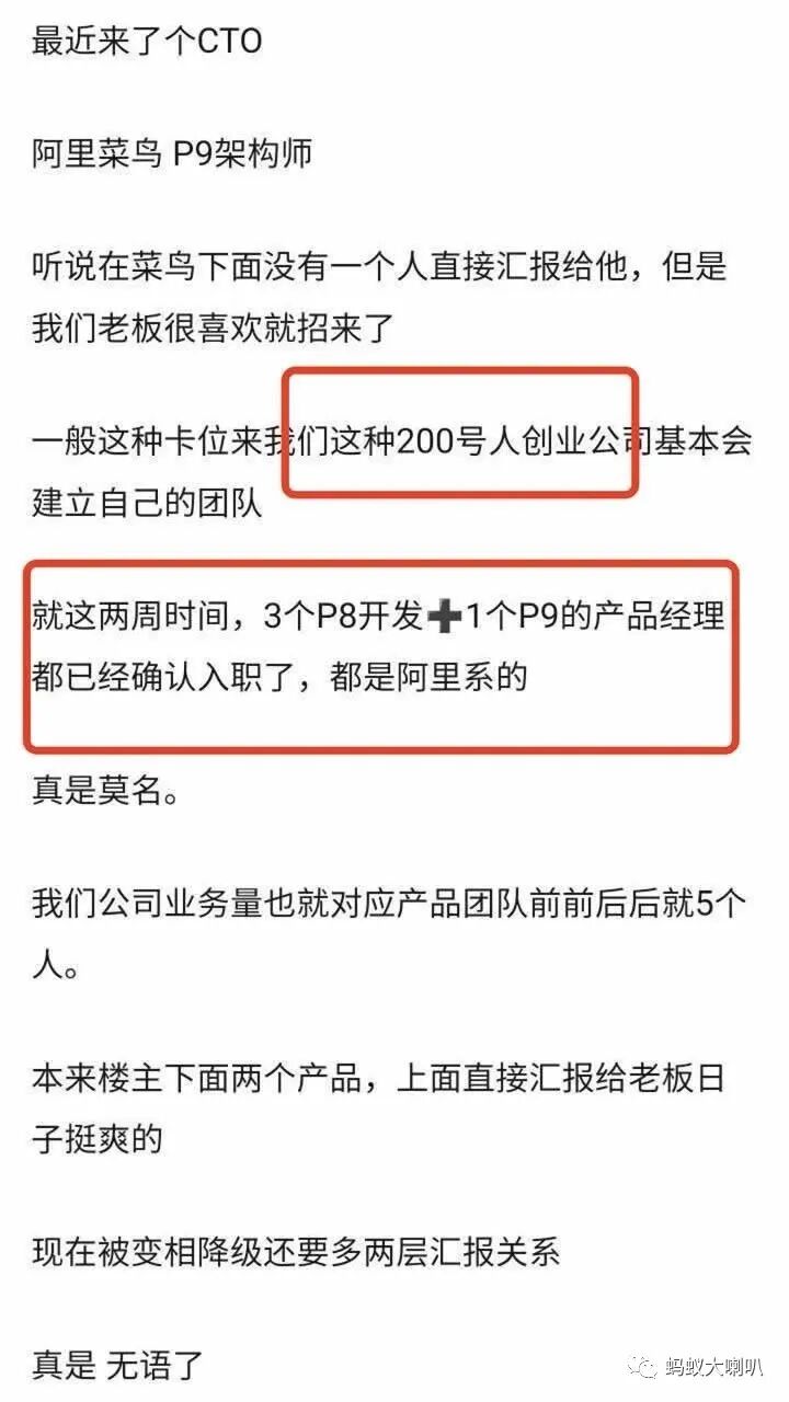 2、最近来了个CTO,阿里P9架构师,入职两周时间就组建了自己的“嫡系”团队,3个P8开发和一个P9产品经理。导致自己职位变相降级还多了两层汇报关系,十分无语!