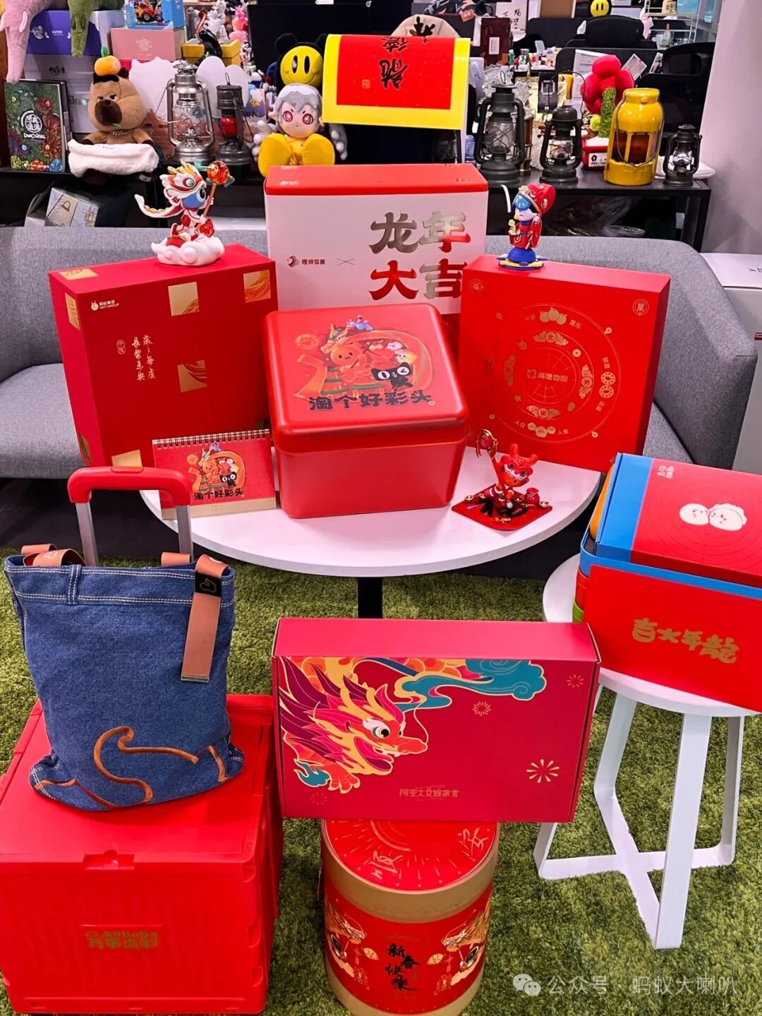 放上一张阿里新年礼盒全家桶,大家都能看出是那些事业部么?