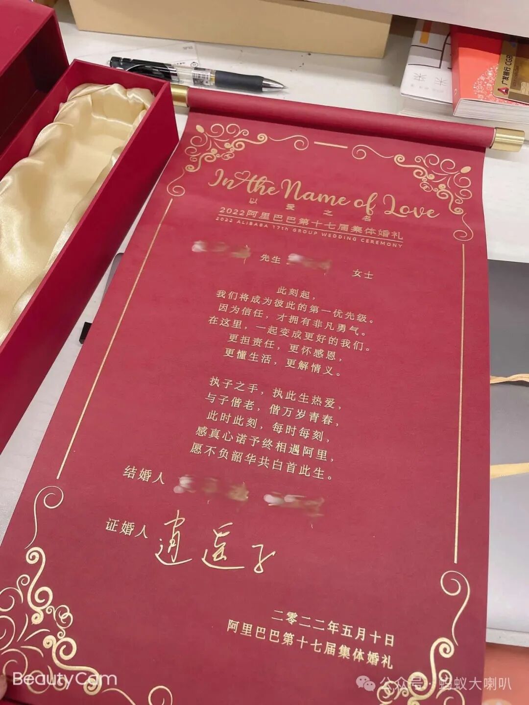 在阿里恋爱结婚的我们,现在怎么样了?恋爱3年,结婚2年。虽然以后不能每天一起上下班了,但他先脱离苦海了,我还要继续苟着。还记得我俩2022年参加阿里集体婚礼的情景,当时的证婚人还是逍遥子张勇,去年他已经拿着大礼包离开了。时间过得真快,半年后我老公也拿了大礼包,感觉这就像击鼓传花似的,只是不知道什么时候到我这里。想到这里内心有些仿徨。