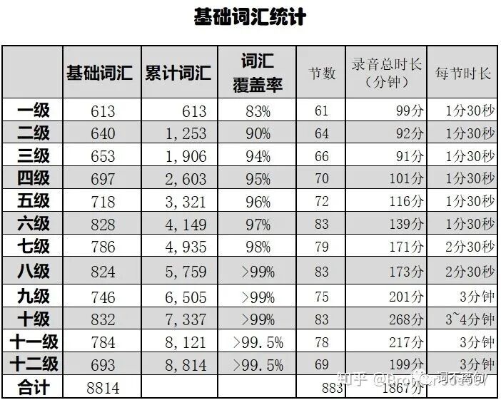 五、知道具体学习方法先看图(统计来自《词不离句:英语常用词汇8000分级过关》,链接在“训练指南”的评论区里或百度一下“词不离句”):