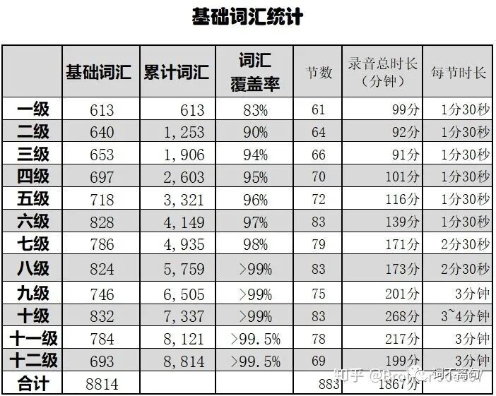 五、知道具体学习方法先看图(统计来自《词不离句:英语常用词汇8000分级过关》,链接在“英语训练指南”的评论区里或百度一下“词不离句”):