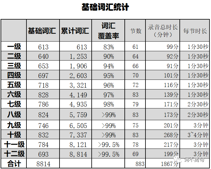 一、不论是小孩,还是大人,都应该从启蒙英语开始,从ABC开始。启蒙英语有很多,网上一搜一大把,比如《培生儿童英语》等。二、启蒙英语之后,就要注意高频词的学习与运用,高频词统计如下表(来自《词不离句:英语常用词汇8000分级过关》,链接在“英语训练指南”的评论区内,或百度一下“词不离句”):![]()