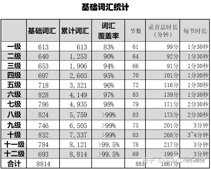 如何解决这些问题呢,看下表【来自《词不离句:英语常用词汇8000分级过关》的统计(蓝色字体是链接)】: