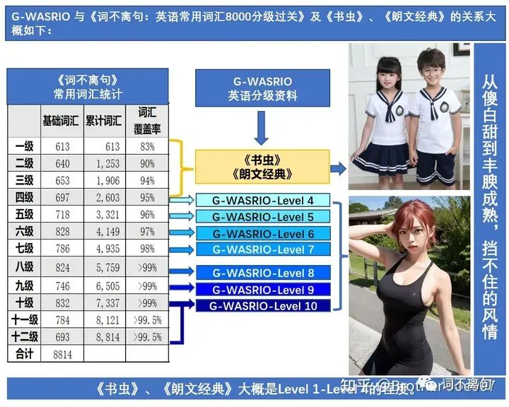 •G-WASRIO [dʒi:-wəzriə] 是“The Series of Graded English Readers of Words And Sentence Rolled Into One 的简称,是” 《词不离句》(蓝色字体是链接)之英语分级读物”的意思。它长得咋样的呢?是这条街上最靓的仔,最风情万种的妞吗?如图: