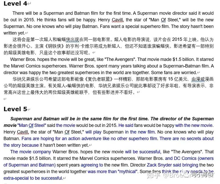 ●更加美妙的是,这样的内容还有Level 6,Level 7,文章表述的内容跟前面的Level 4, Level 5也是差不多的,只是层层推进,从易到难一点,再难一点,有4个级别。如下图: