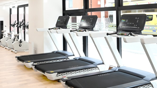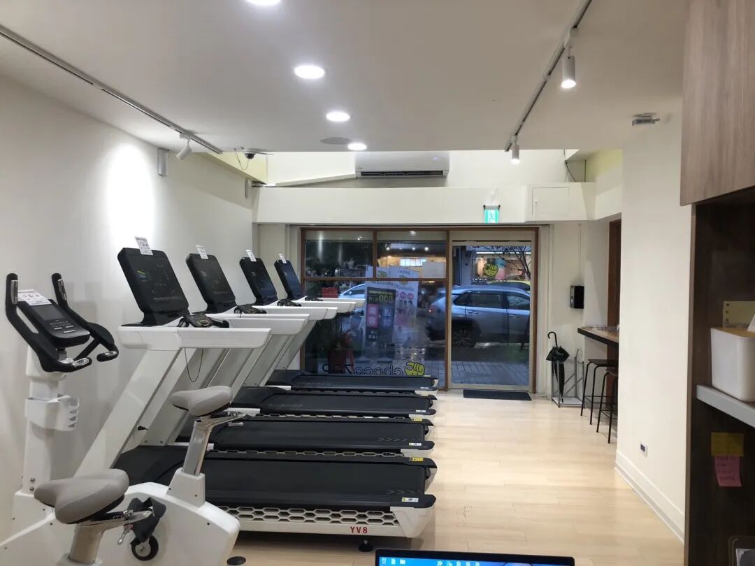 与便利超商相近的健身空间里,也呈现轻巧氛围。室内采用白色基调的干净装潢,没有刻意挑起锻炼动力的激昂氛围。