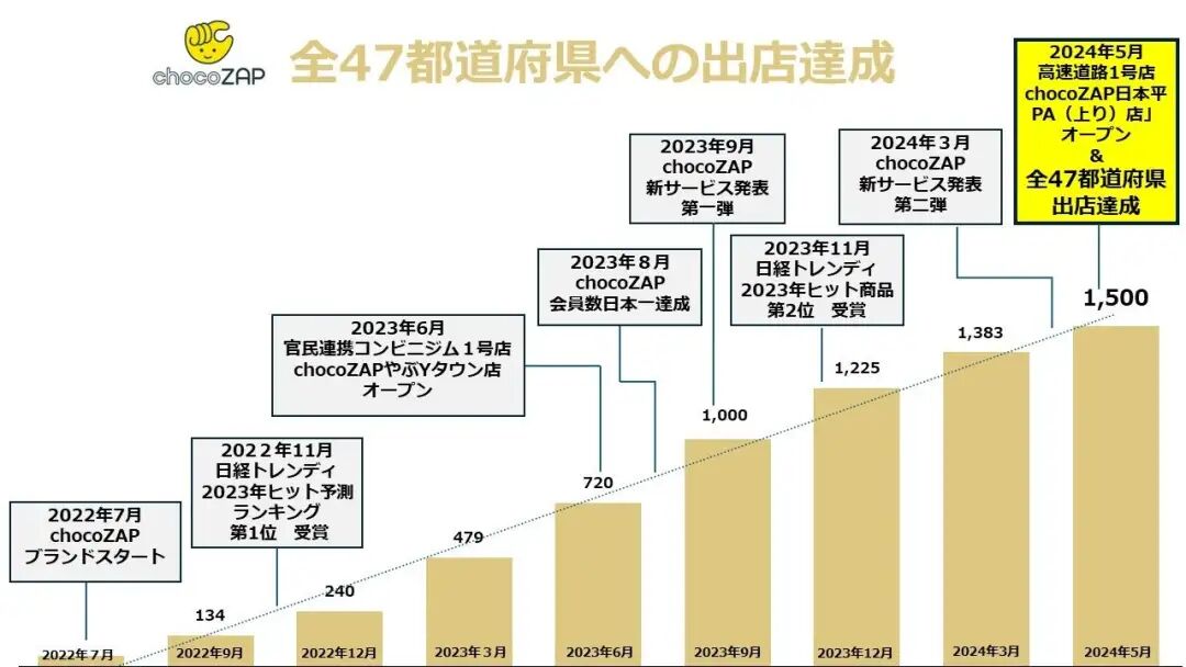 「光是去使用美容仪器也很划算,」一位日本消费者分享。正因为不用担心缴了会费却无法回本的超高CP值(性价比),加上省时简便的TP值(时效比,短时间内创造最大效用),让chocoZAP推出不到一年,拓点超过700家,业界视为「异常」的超高速展店; 冲破55万人的会员数,则是日本健身界规模第一的Anytime fitness于2010年进军日本后 ,花10年才达到的数字。