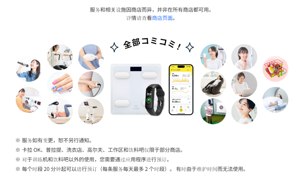 Rizap发现,有些健身爱好者会为了更新颖、不同功能的机台而转至其他健身品牌,chocoZAP虽不以训练器材的话题性为宣传主力,但却靠着可免费使用的美容仪器、美甲仪、室内高尔夫练习空间、KTV、EMS电击设备等,提高附加价值,进而吸引chocoZAP高达8成会员,每周固定上门来做美容保健。