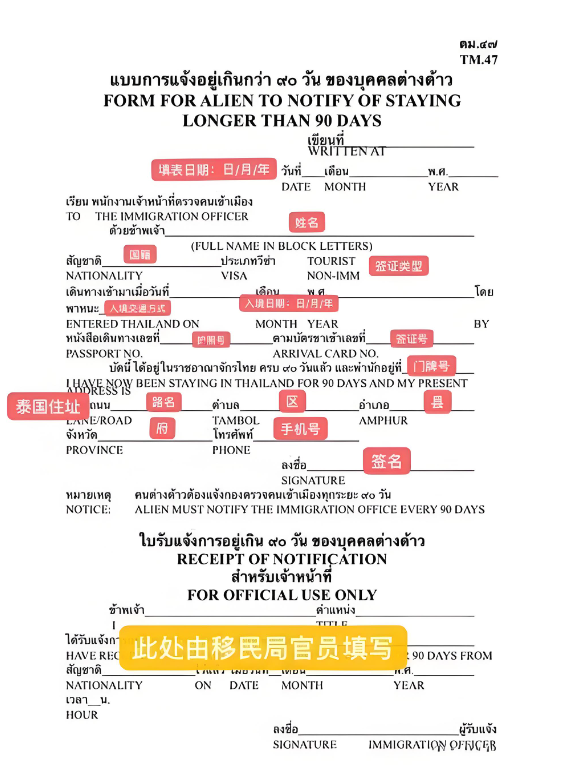 这张纸条,上面有你进入泰国24小时内的时间,和你的居住地址。