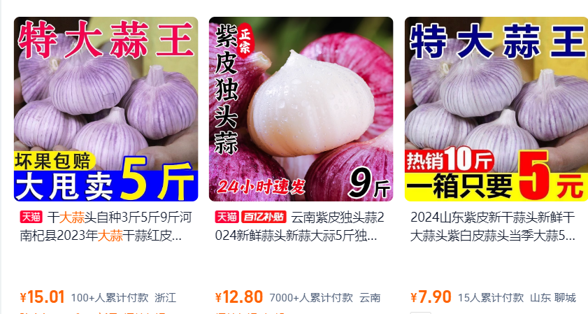 再看一下某宝上的大蒜的价格,差距太大了。