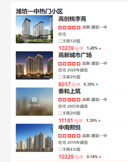 潍坊一中热门小区: