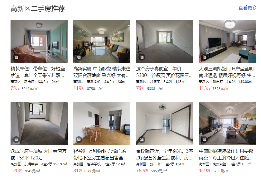 高新区的房子要稍微贵一些: