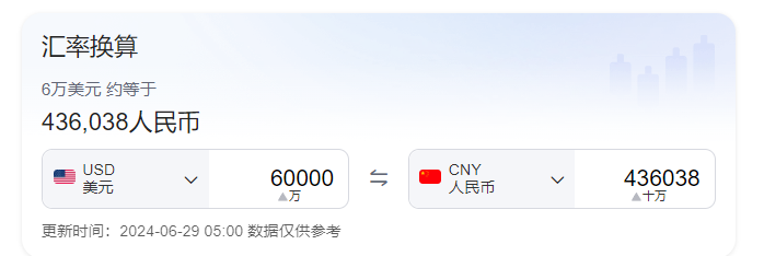 6万美元,按照今天的汇率,是一年436038元。