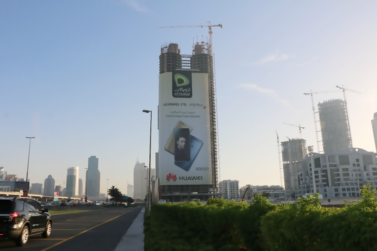 华为P10系列广告出现在阿联酋最大的户外大屏上