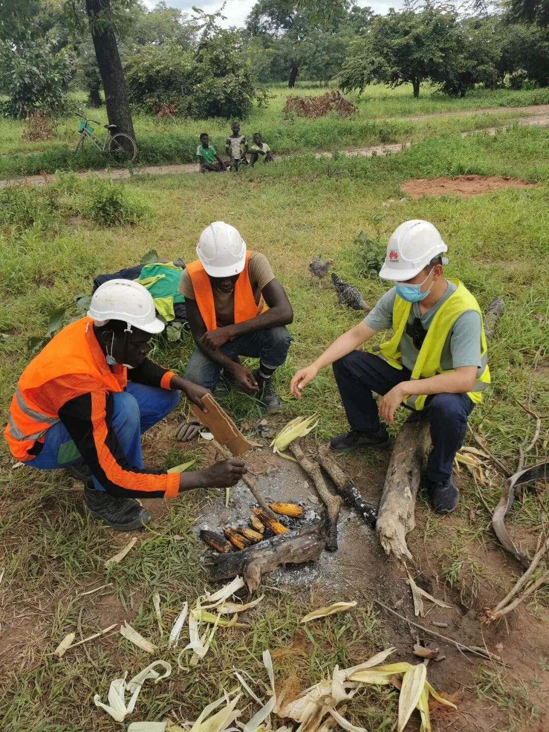 我们盛情难却,收下两只鸡,并把钱给了老乡。我特意掏出手机,拍下这个特殊的画面。后来每次看到这张照片,我都觉得我们还是实实在在地为非洲人民干了些事的,我们的工作是很有意义的,也真正践行了公司“把数字世界带入每个人、每个家庭、每个组织,构建万物互联的智能世界”的愿景,我想这也是很多华为人长期坚持在这里的动力之一。