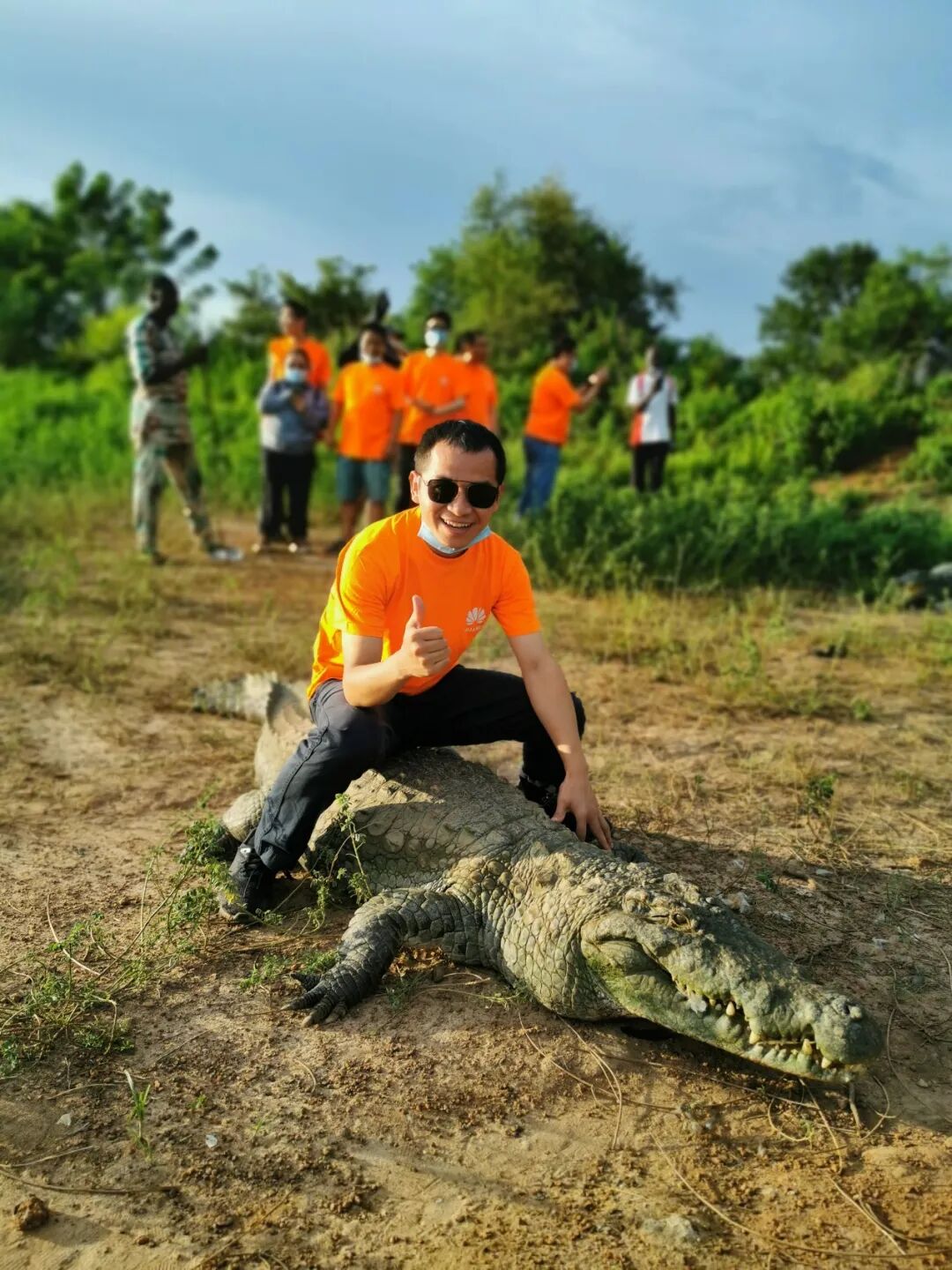 外部环境虽然相对艰苦,但办事处的兄弟姐妹们都学会了“苦中作乐”。工作之余,大家会组团去“骑”鳄鱼,地点在一个湖边,人一旦靠近,鳄鱼就向湖岸聚拢,几分钟之内,光秃秃的湖边一下子乌泱泱全是鳄鱼,场面非常壮观,还可以花3000西法,也就是约40元,让鳄鱼王表演“生吞活鸡”节目。