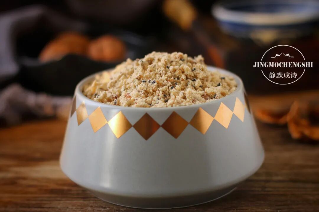 【辅料】:黑白熟芝麻各60克、核桃仁100克、花生仁50克。