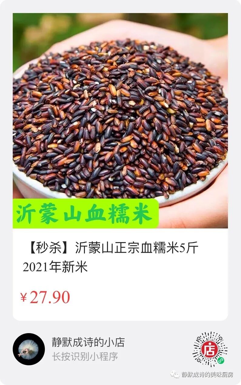另外有个好消息要告诉大家,小店上架了来自沂蒙山区的血糯米,它补血益气养颜,食用价值非常高。我搞了一个秒杀活动,让利于大家,5斤农家自种的血糯米27.9元包邮到家,活动时间短,大家抓紧时间购买。