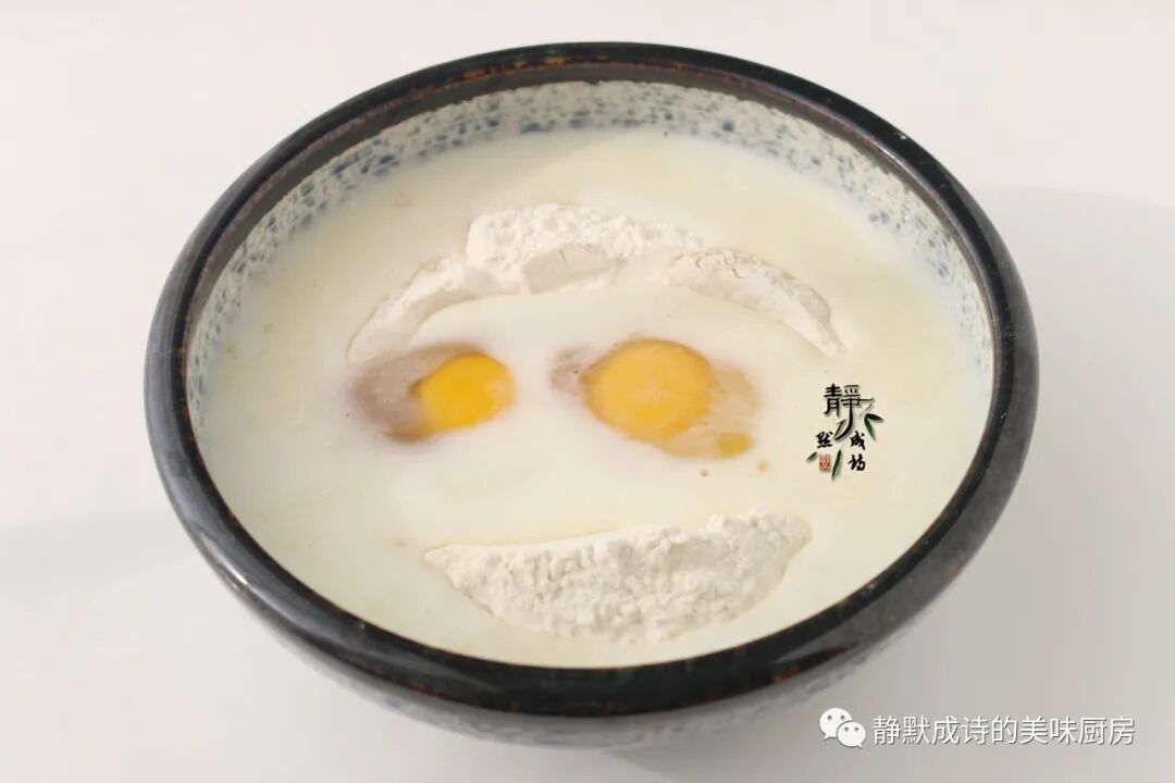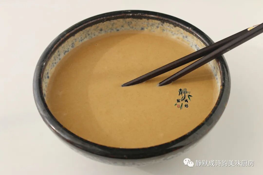 4、再加入适量牛奶。牛奶不必一次加到位,随时调整。