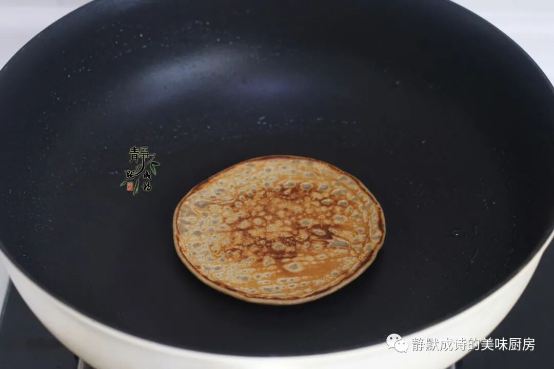 7、小火煎,把两面煎熟即可,依次做好所有的面糊。