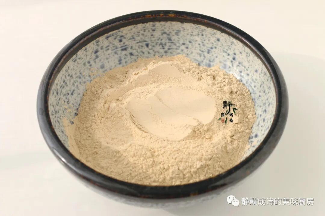 1、取红薯面粉。红薯面粉本身没有粘性,按我们的方言就是它没劲儿,意思就是它和面的话会松散,不能像普通面粉那样抱团儿,所以,还需要另外加一点点普通面粉来增加它的粘性。