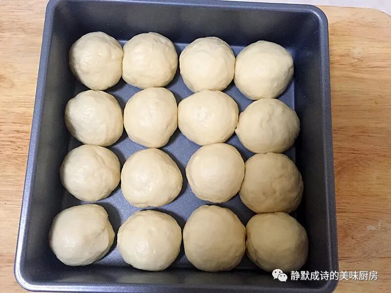 5、均分为16份,每份约35克左右,揉圆,放入模具。