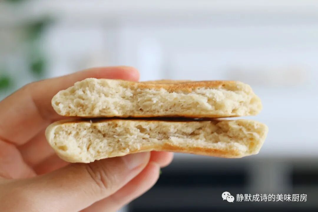 烙好的发面饼宣软可口,咬下去就跟吃有嚼劲的大面包一样。不管是白口吃,还是用来夹菜或夹肉都非常不错。而且近来我家吃肉夹馍也是用它,抛弃了白吉馍改成了它,老人孩子都爱吃。