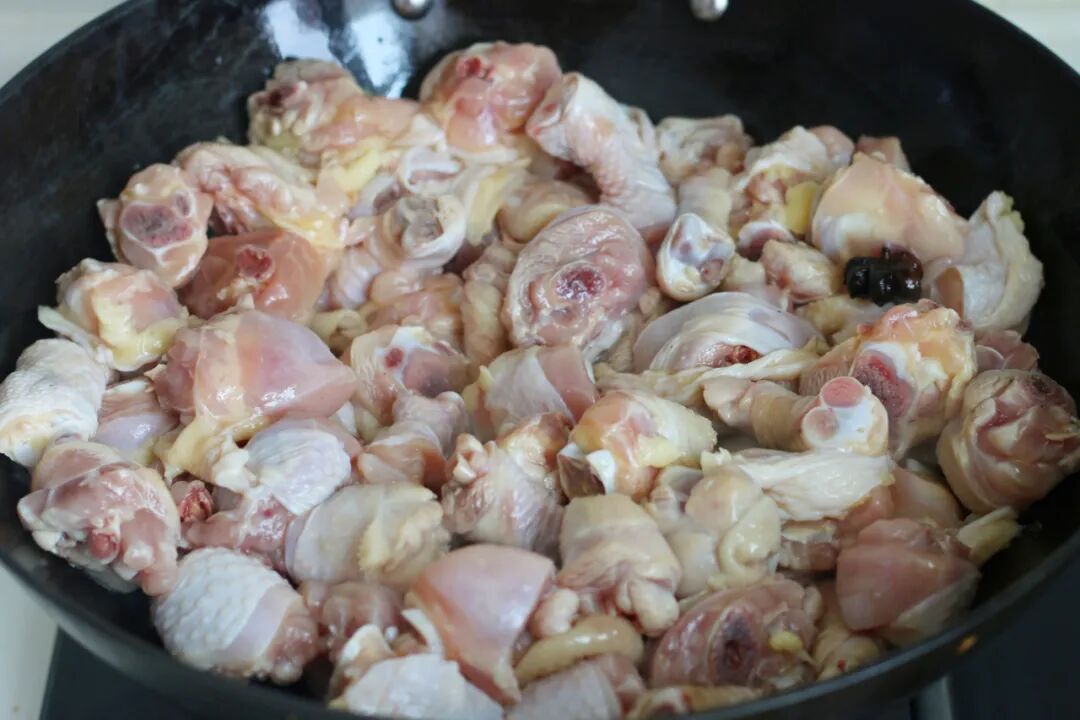 1、鸡腿让卖家帮忙剁成小块儿,回家清洗一下,再用清水浸泡出血水,期间多换几次水,然后要沥干水分待用。有了这一步,鸡肉就不用焯水了,这样做出来的鸡肉会更嫩更鲜。