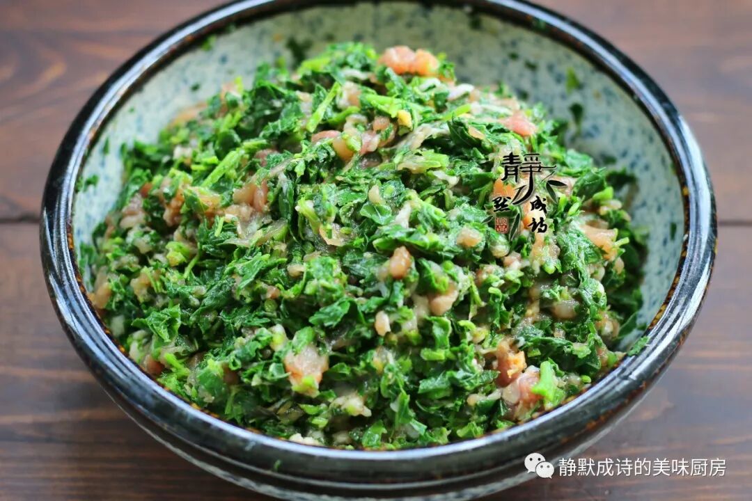 苋菜要焯水后才能入馅儿;如果采不到野生苋菜,菜市场里也许会遇到。