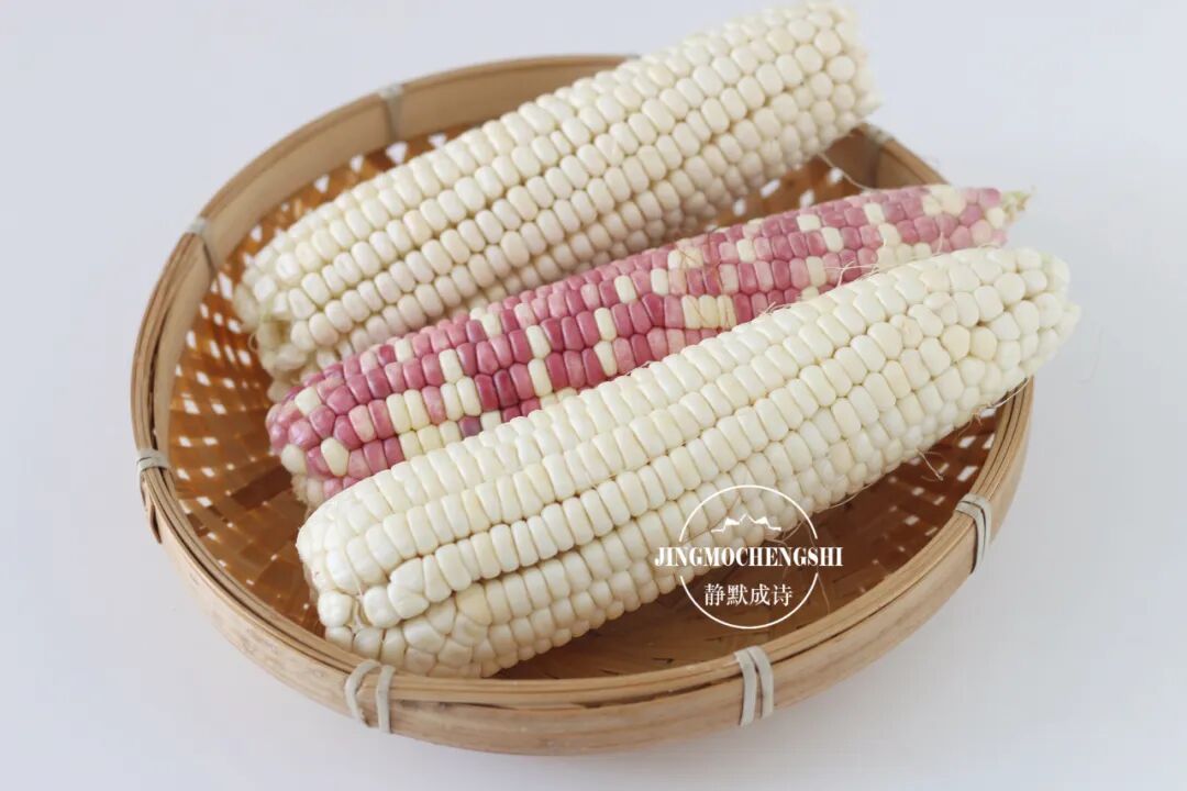 3、玉米,我用是糯玉米,两种花色,都是糯的,糯中带着一丝丝甜味,把玉米洗净切段。