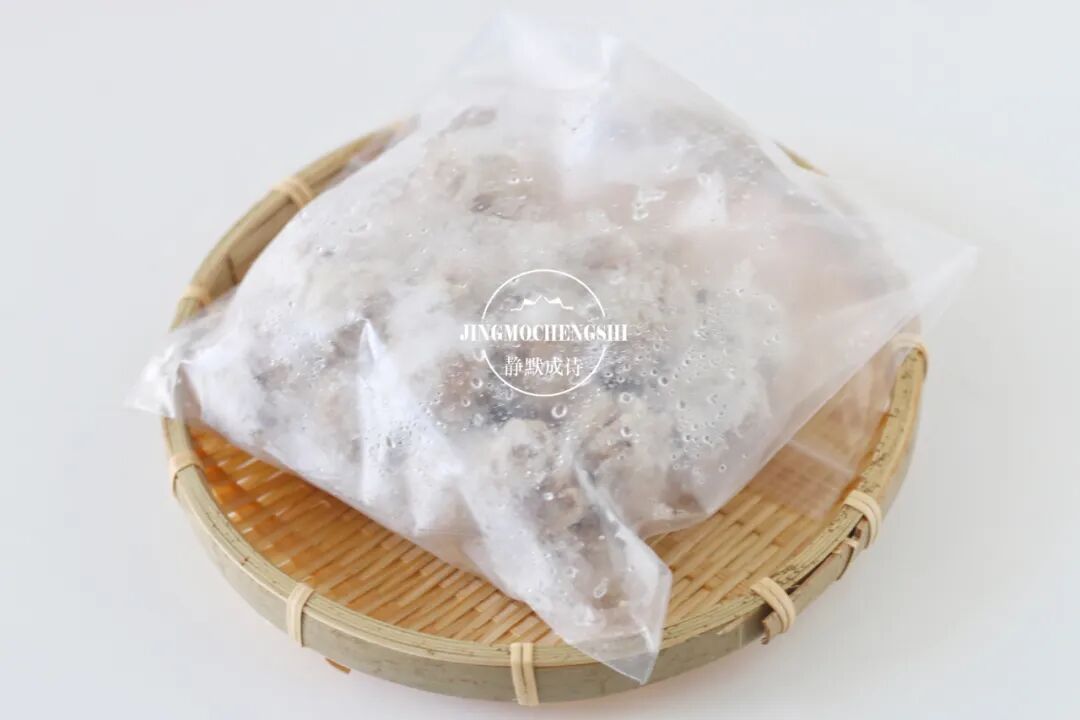 关于肉丸的做法,我再简单地说一下它的做法。九瘦一肥的猪肉剁成肉糜,加入鸡蛋清白胡椒粉盐姜末,顺一个方向不停地搅拌上劲儿,煮半锅清水,然后用虎口挤出丸子,边挤丸子边放进清水中,把丸子全部挤好后,中火煮开,撇掉浮沫,三四分钟后捞出,晾凉后分装。