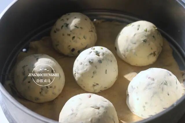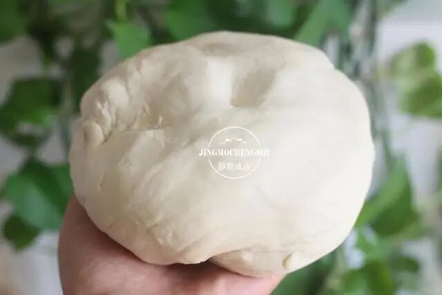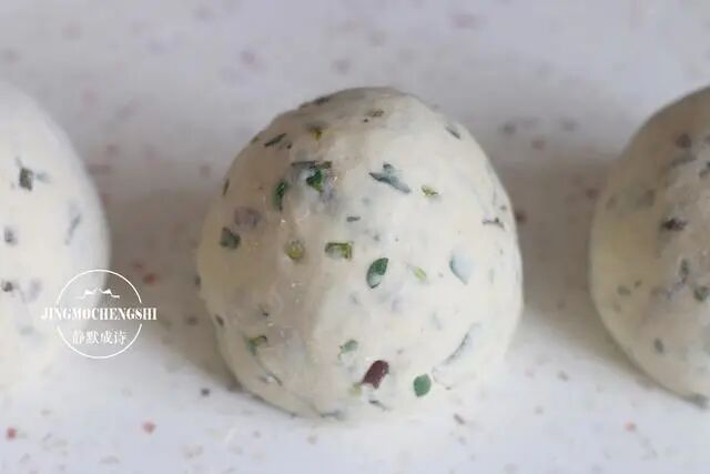 2、这是和好的面团,一个字:硬。如果担心掌握不好,就把马齿苋碎加进面粉一同揉面。