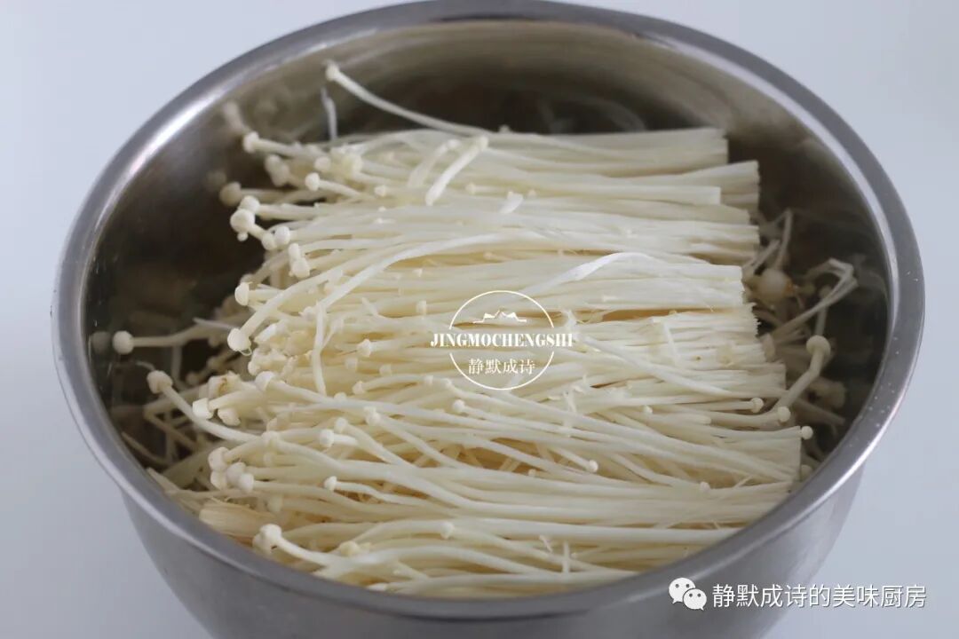 这道菜要做的好吃,重点是火候的把握。因为金针菇的火候欠了会夹生,火候过了会失去脆嫩的口感,而且越发的塞牙,根据份量,一般掌握在2-3分钟为宜。金针菇遇热会逐渐软化,在它全部软化后,就可以吃了,而这个软化的时间,就是两三分钟。