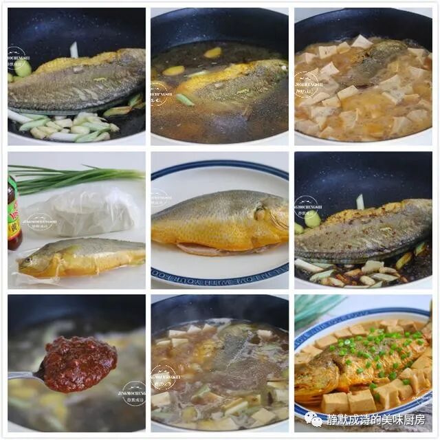【食材】:黄鱼1条(约450克)、北豆腐1块儿、黄豆酱2汤匙、鲜酱油2汤匙、葱姜蒜各5克、油盐适量、香葱1棵。