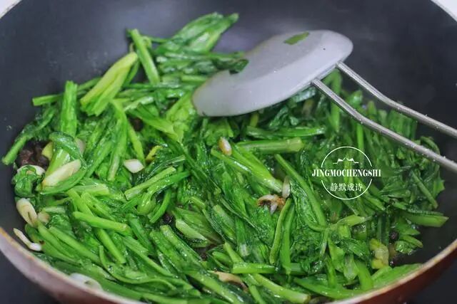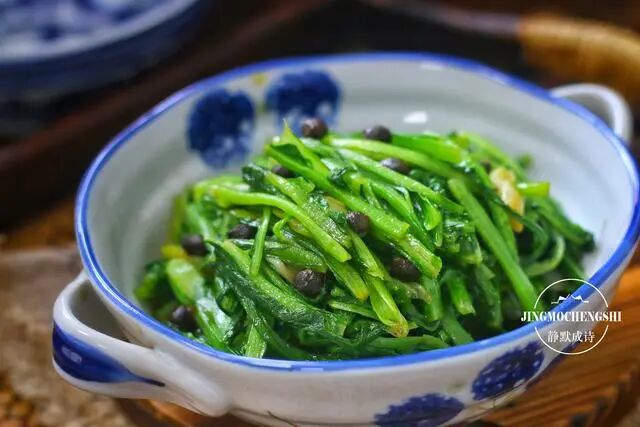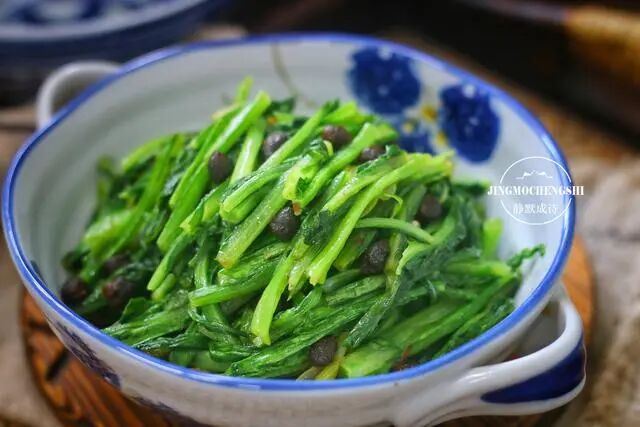 【食材】:油麦菜500克、豆豉2汤匙、葱花和蒜末各5克、油1汤匙、盐少许。