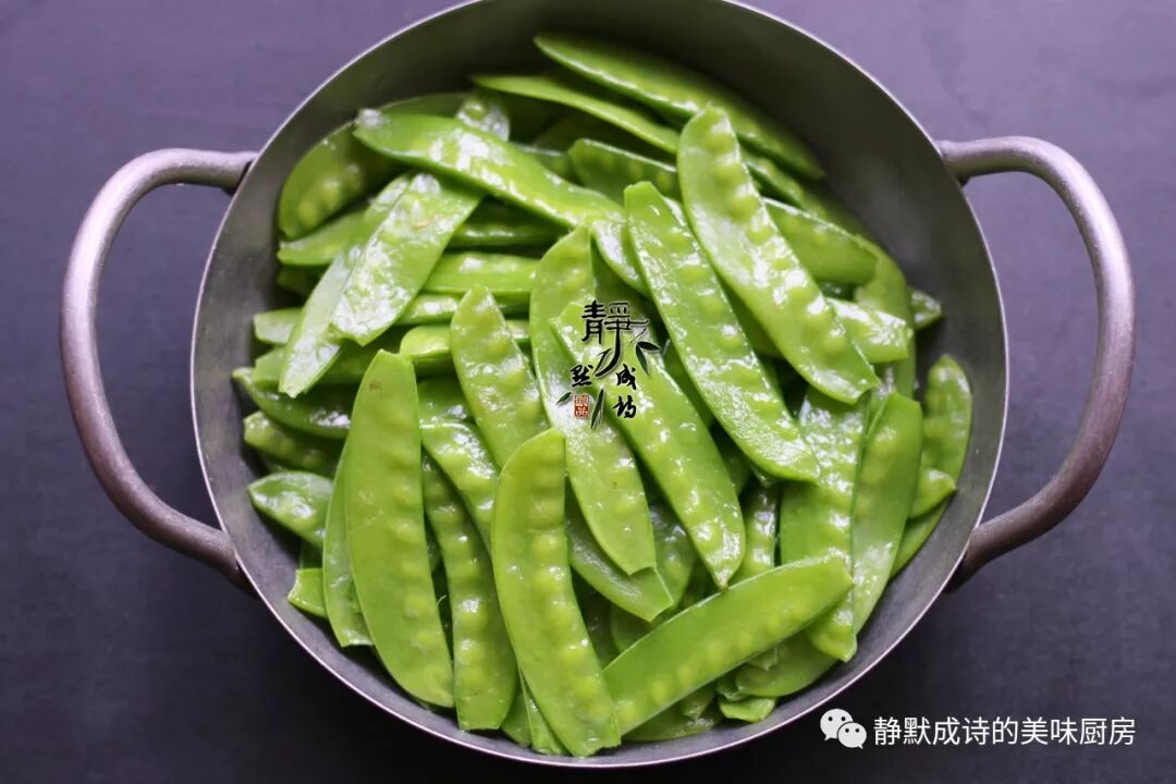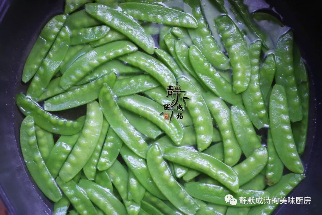 4、待荷兰豆刚刚成熟时就要捞出沥水待用,切勿焯烫的过软,不然就失掉它清脆的口感了。