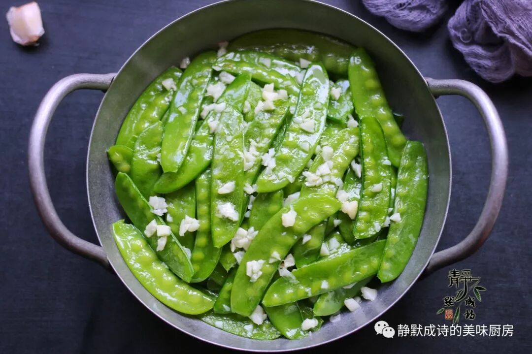 【食材】:荷兰豆500克、大蒜半头、油盐适量。
