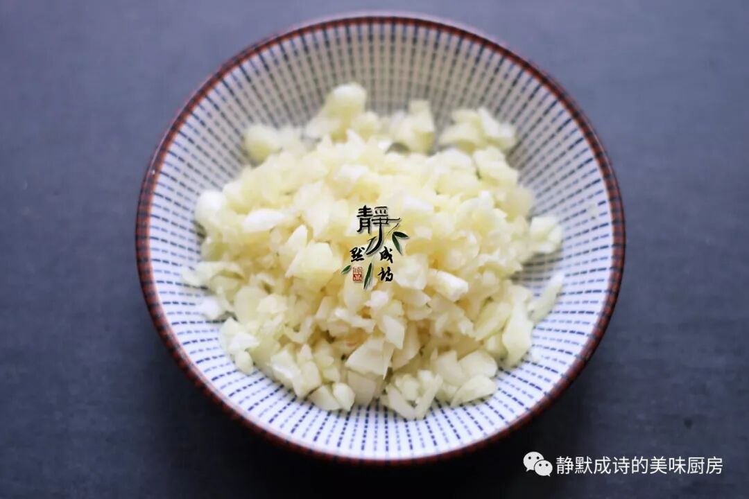 2、蒜要多准备些,剥皮后切成蒜蓉待用。这道菜里的调味料只有蒜和盐,其他没有,但就是这么简单的食材却能给我们带来莫大的味蕾的享受。