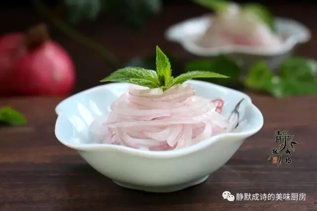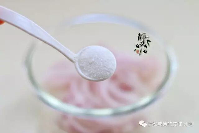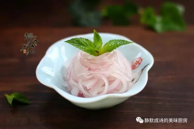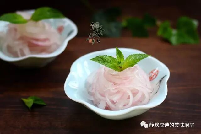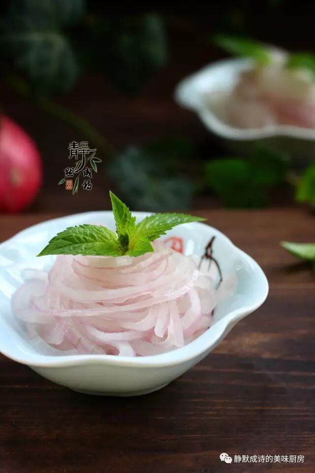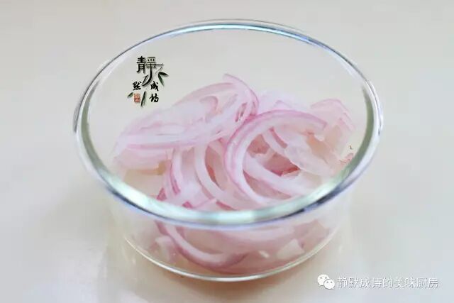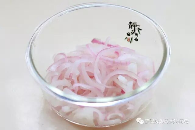 5、经过冷藏的洋葱丝,变得半透明,口感清脆。这个做法比直接切丝腌制的口感要好,大家可以试试看。