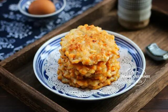 这是用红薯颗粒加少许面粉做成的小饼,吃起来有着丰富的口感和香甜的味道,特别喜欢。