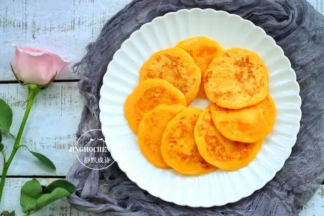 做法:先把红薯洗净后去皮,切成大薄片之后上蒸锅蒸熟,趁热把它用勺子压成泥,把红薯泥压细腻之后,加入不超过红薯泥三分之一分量的糯米粉,接着把红薯泥与糯米粉和成软硬适中的面团,不要求这个面团特别细腻,成团即可,用手揪下一小块红薯面团,在手中搓圆,然后压扁,放进刷了油的平底锅,小火煎,煎好一面再翻面煎,两分钟就能煎好,如此依次把所有的红薯饼做好即可。