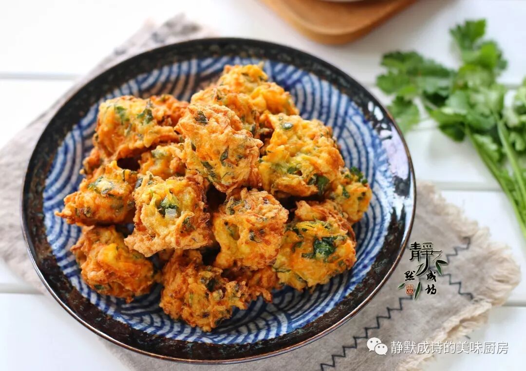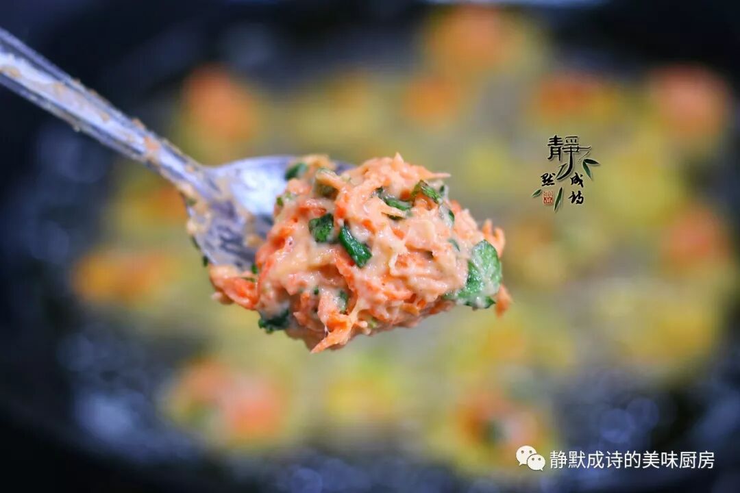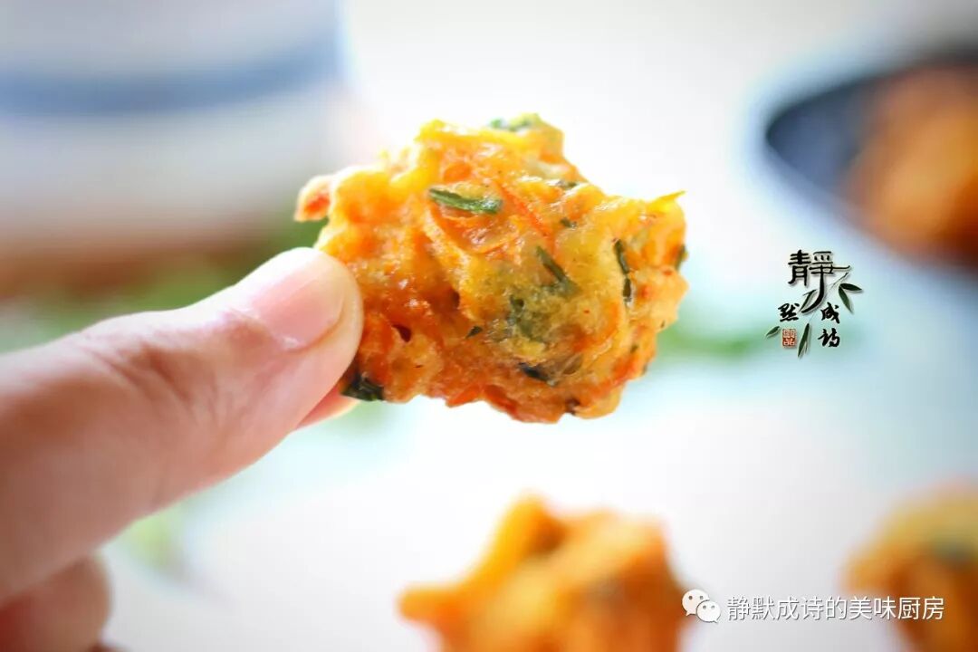 7、趁热吃最香了,外酥里嫩,满满的胡萝卜的鲜甜和香菜遇热后挥发的香气,吃几个,特别满足。我家老少都爱吃,您也快试试看吧!