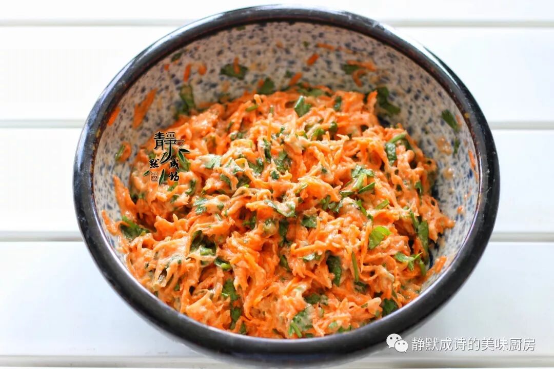 【小贴士】:胡萝卜丸子,胡萝卜为主,面粉为辅,所以面粉不要多,关键在鸡蛋液的多少,请视胡萝卜的量而定,注意这里是不加水的。