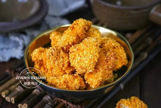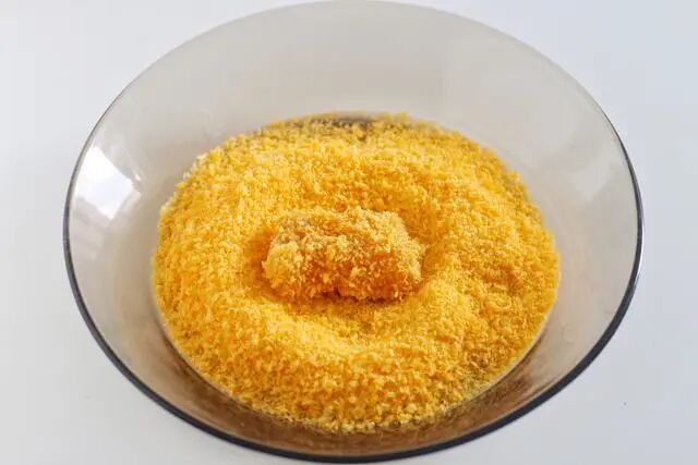1、面包糠分为两种,一种是浅色的一种是金黄色的,建议大家平时准备金黄色的,炸出来色泽更好看。