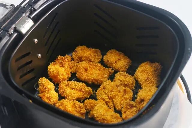 最后,有一个有关于空气炸锅的观点有必要跟大家分离一下。央视一位著名主持人在小视频中说,使用空炸不宜超过120度和10分钟,过了则于身体不利。这种说法之所以会放在小视频中说,可能是有数据支持吧,大家在使用空炸时,尽量温度低些,时间短些。就像今天这道鸡米花,大家可以切小块一点来减少时长。