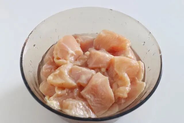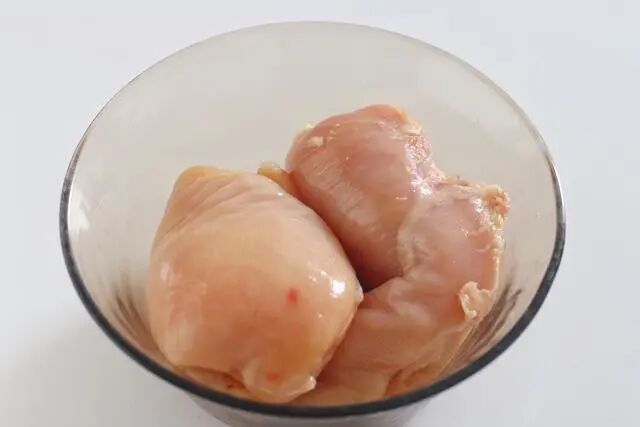 1、我用了两小块儿鸡胸肉,先把它们清洗干净之后沥水待用。
