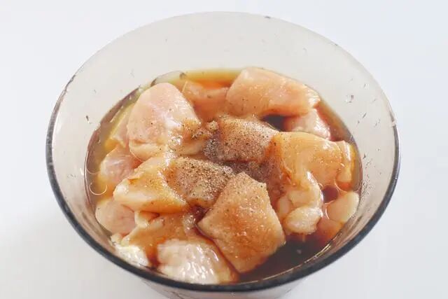 3、如果追求更好的口感,可以用鸡腿肉来做,并且鸡皮不要去,带点儿油脂自然更好吃。与鸡腿相比,鸡胸过柴,会多少影响成品口感。